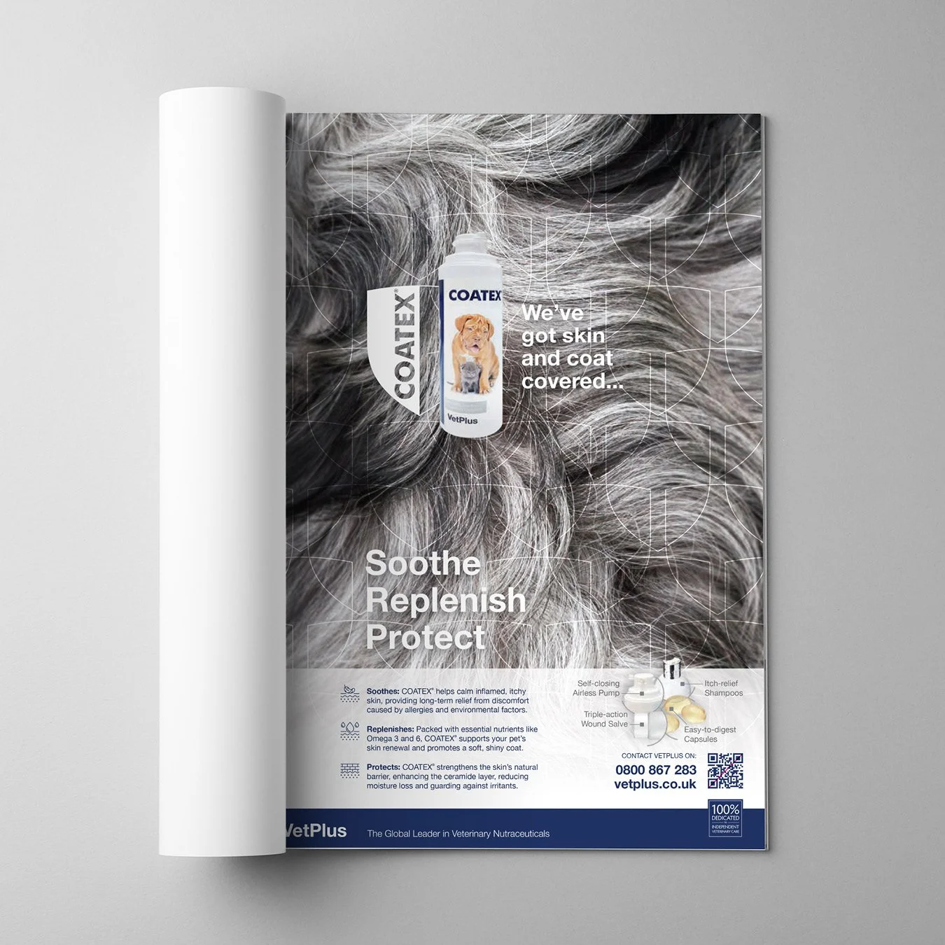 The headline “We’ve got skin and coat covered” became both the creative hook and the positioning statement.